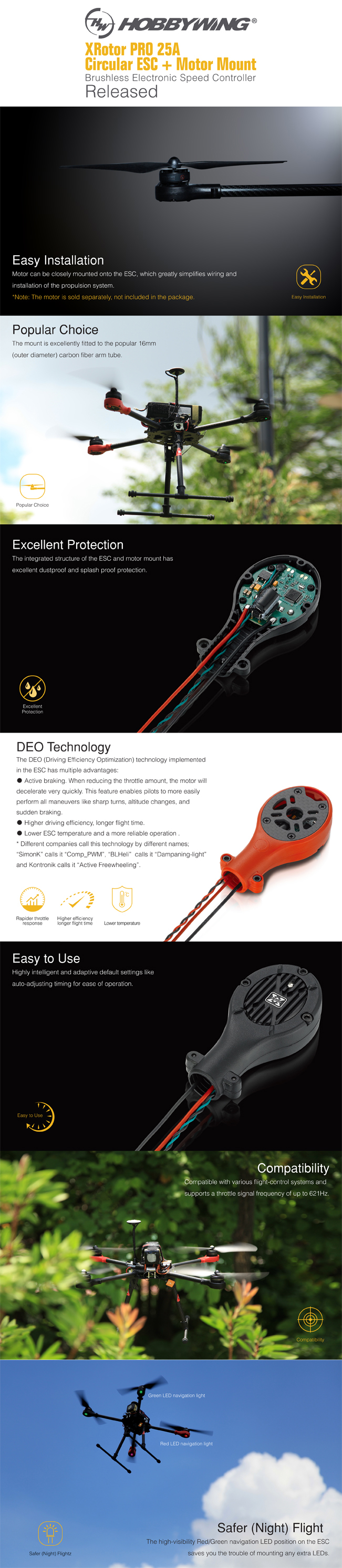 HOBBYWING XRotor PRO 25A ESC + Motor Mount for drone (2ks) Red + (2ks) Black